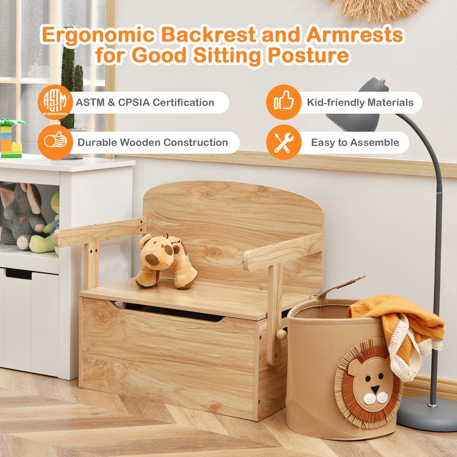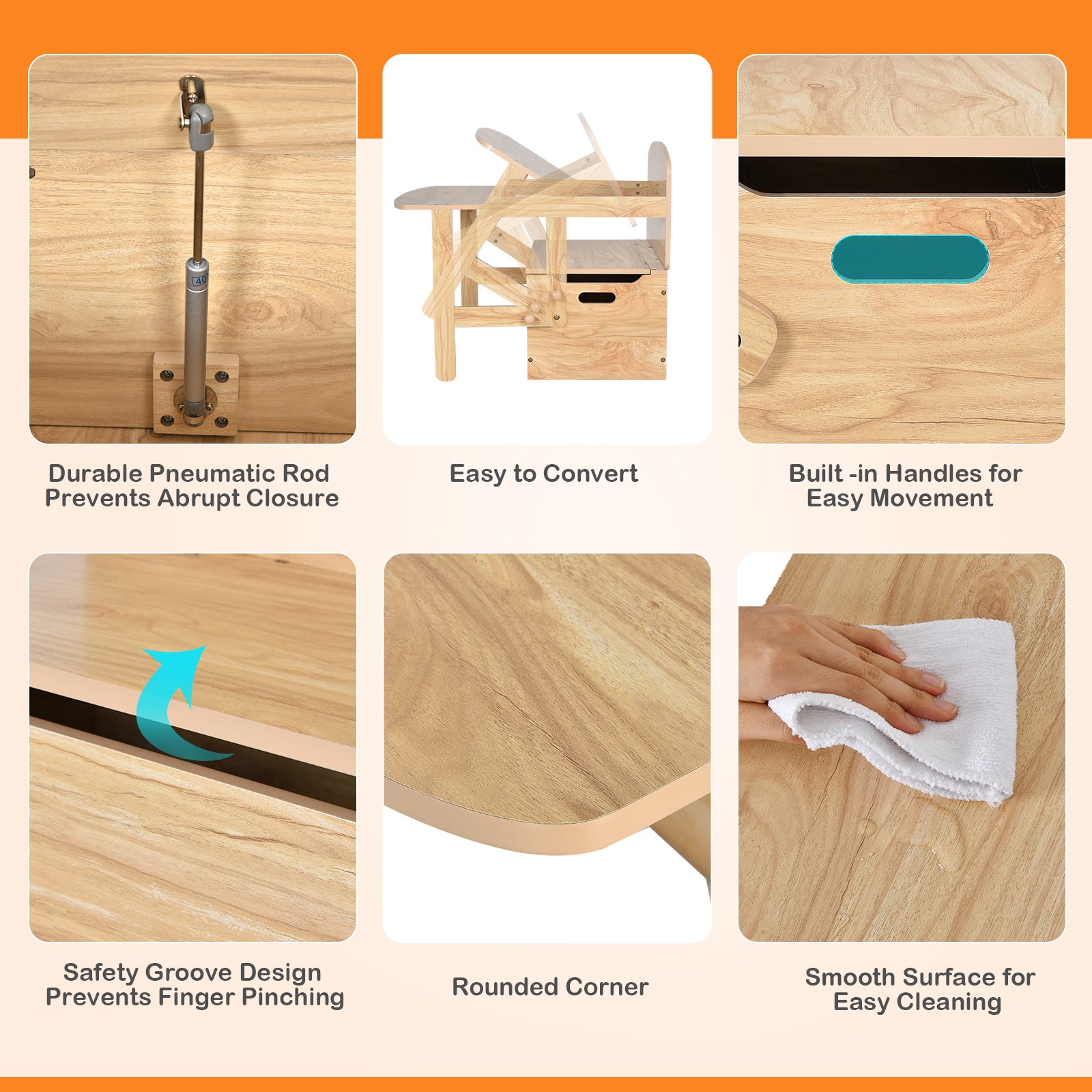 3-in-1 Kids Convertible Storage Bench Wood Activity Table and Chair Set-Natural
