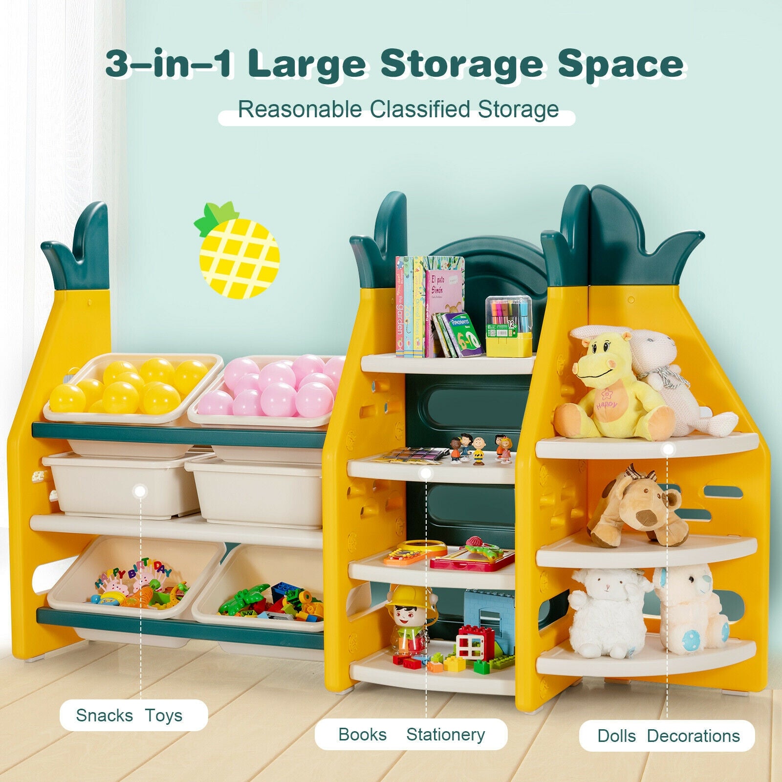 3-in-1 Kids Toy Storage Organizer with Bookshelf Corner Rack