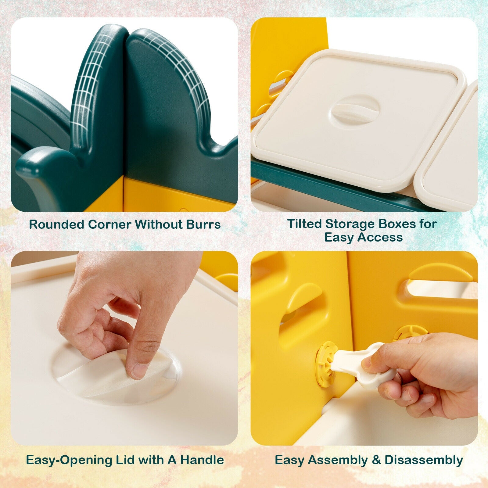 ● Stable Structure and Safe: Material: With every part firmly connected with each other this toy combination shelf will be super stable without deformation. Besides the material we use is safe PE which is widely used in kids' products and will do no harm to the body's health. ASTM and CPSIA certificated.