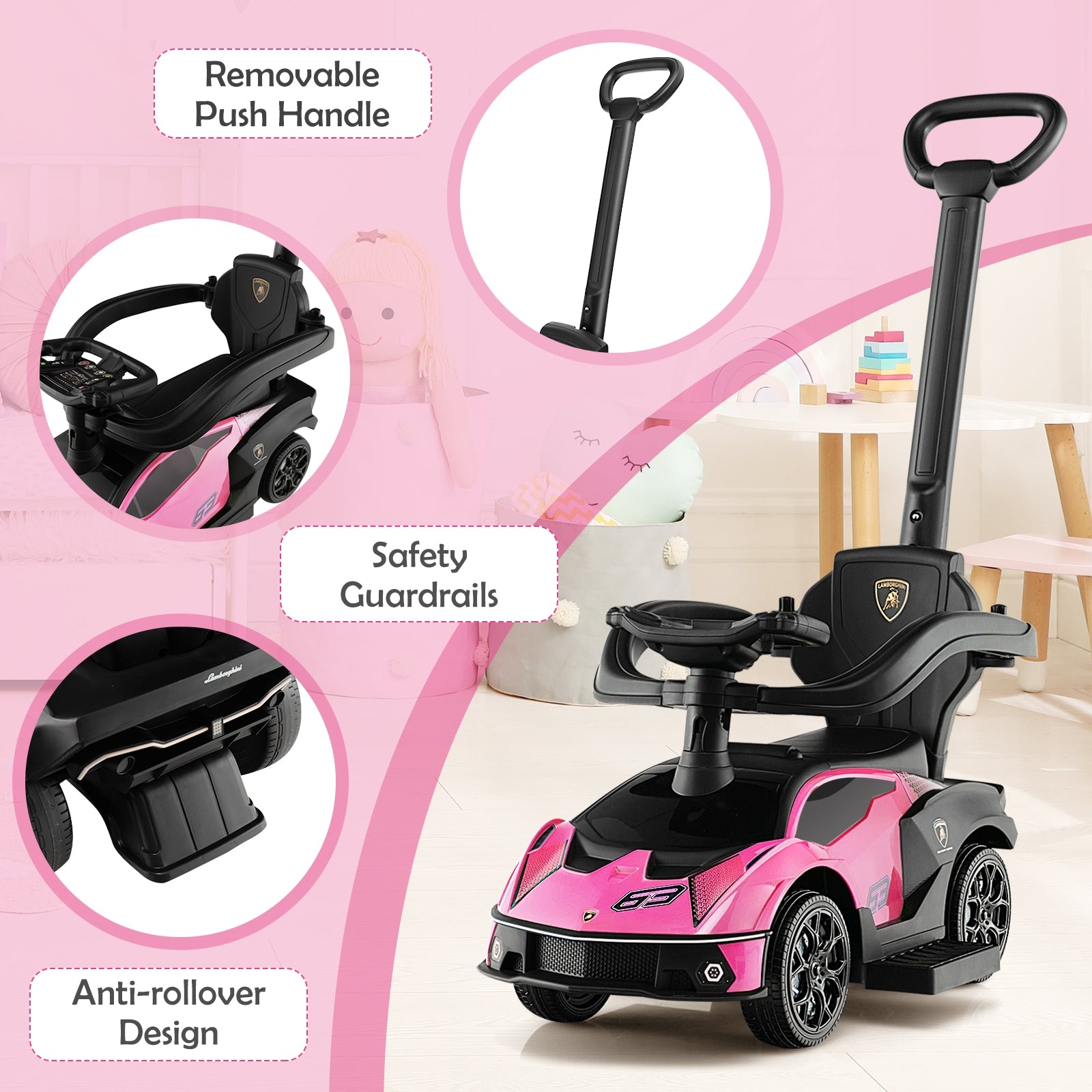 3-in-1 Licensed Lamborghini Ride on Push Car with Handle Guardrail-Pink