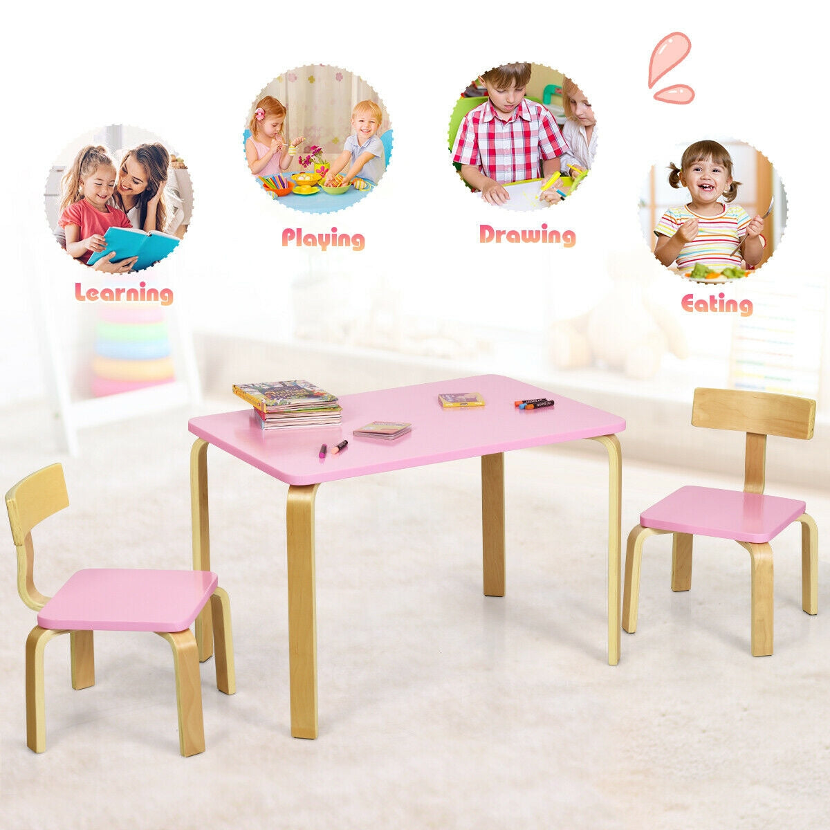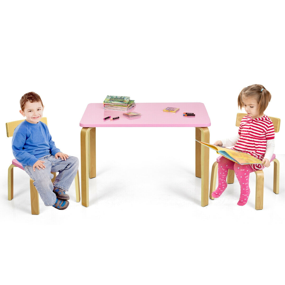 3 Piece Kids Wooden Activity Table and 2 Chairs Set-Pink