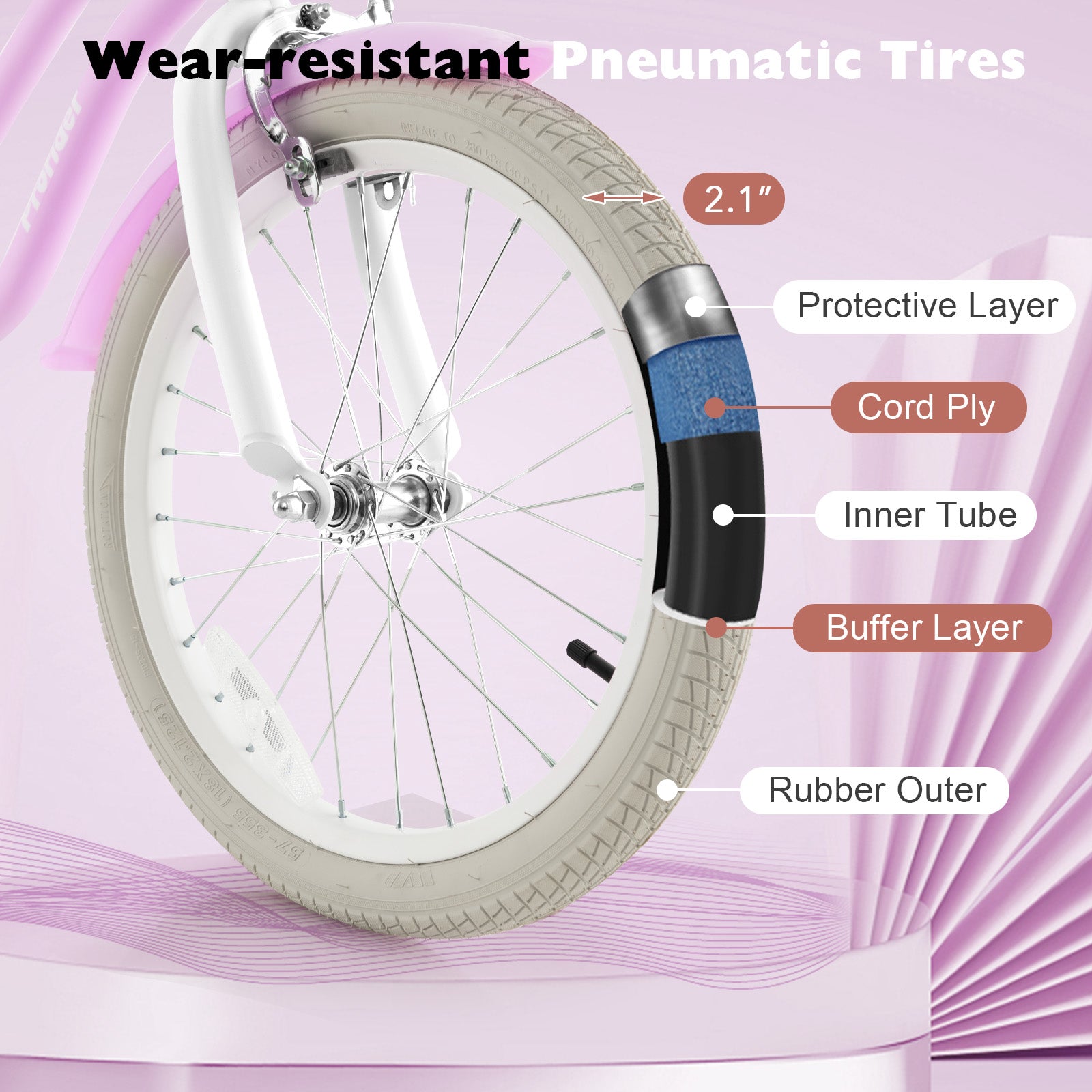 Specially Designed for Young Riders: The wear-resistant pneumatic tires are made of multi-layer materials: rubber outer buffer layer cord ply inner tube and protective layer offering a safe and steady riding experience. The sturdy carbon steel frame and stable training wheels make it easy to ride. What's more the PP covered seat improves the overall comfort.