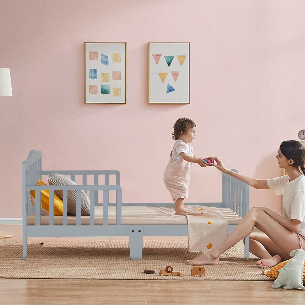 Classic Design Kids Wood Toddler Bed Frame with Two Side Safety Guardrailss-Gray
