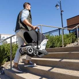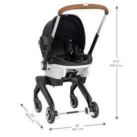 Shyft into life with a newborn! The Evenflo® Shyft™ DualRide™ Infant Car Seat Stroller Combo with Carryall Storage & Extended Canopy is a single piece of baby gear that Shyfts from infant car seat to stroller in one step, streamlining life on the go. Moving from car to sidewalk? Simply lift the carrier off the base, release the wheels and you’re rolling in no time. From backseat to street in a heartbeat! Maneuvering stairs? Retract the wheels, carry up or down steps, pop the wheels back down and stroll on. No struggling with multiple pieces of gear. No disturbing your little one. This car seat stroller combo makes every trip easier. Designed for infants as small as 3 lb and up to 35 lb, who measure from 15.7 in. to 32 in., this stroller with infant car seat in one comes with a no-rethread harness that adjusts to 8 positions to grow with your child. Thoughtful design places the infant carrier on the stroller higher, so your baby’s sweet face is always near. You’re looking for a safe infant car seat — and the smart car seat is a connected car seat. With SensorSafe™ to connect you to your little one from their car seat, the DualRide is the gold standard when it comes to child car seat safety. DualRide’s integrated SensorSafe technology alerts you in real-time to 4 potentially unsafe conditions from your child’s car seat either inside or outside of the car via Bluetooth: unexpected chest clip unbuckling, unsafe ambient temperature, child unattended, and child buckled too long. LockStrong™ Installation and Quick Connectors™ provide solid, secure installation in no time. Compatible with the Evenflo® Gold Shyft Travel System, this stroller car seat combo provides an extendable, full-coverage canopy to block rain and snow, with UPF 50+ to help protect against the sun — a built-in mesh peek-a-boo panel lets you keep an eye on your baby. With the DualRide stroller and infant car seat combo, the extras aren’t extra! A removable carryall storage bag and removable parent cupholder are included. Another plus: Wheels nest securely in the base wheel wells in your vehicle, so you can take just the carrier into your home without tracking in dirt. To finish it off, this DualRide features our most sophisticated silhouette and premium details, including vegan leather trim, chrome zippers and pulls, plus washable padding, to ensure you’ll Shyft into new parenthood in style. There are strollers and there are infant car seats — you get the best of both in the Shyft DualRide. The one piece of baby gear that does it all!