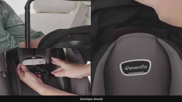 Le Shyft s'adapte à votre nouvelle vie avec un nouveau-né! Ce combo siège d'auto pour nourrisson et poussette avec rangement fourre-tout et auvent étendu ShyftMC DualRideMC d'EvenfloMD est un équipement pour bébé à pièce unique qui se transforme du siège auto pour nourrisson à la poussette en une seule étape, simplifiant la vie en déplacement. Il est temps de passer du véhicule à la poussette? Il suffit de retirer le porte-bébé de la base, débloquer les roues et on y va en quelques instants. On passe du siège arrière à la rue en un clin d'œil! Et pour se déplacer dans les escaliers? Il suffit de rentrer les roues, de monter et descendre les marches, de remettre les roues en place et en avant. Pas besoin de se battre avec plusieurs pièces d'équipement. Nul besoin de déranger son tout-petit. Ce combo siège d'auto poussette facilite tous les déplacements. Conçu pour les nourrissons pesant entre 1,4 kg (3 lb) et jusqu'à 15,9 kg (35 lb), qui mesurent 40 à 81 cm (15,7 à 32 po), ce siège d'auto pour nourrisson avec poussette 2-en-un est muni d'un harnais facile à faire glisser sans le renfiler qui s'ajuste en 8 positions pour grandir avec l'enfant. La conception ingénieuse permet de placer le porte-bébé plus haut sur la poussette, de sorte que le visage gracieux du bébé soit toujours à proximité. Vous recherchez un siège d'auto sûr – et le siège d'auto intelligent, c'est un siège d'auto connecté. Avec SensorSafeMC pour se connecter à son tout petit depuis le siège d'auto, le DualRide est le choix avisé en matière de sécurité des sièges d’auto pour enfants. La technologie Sensorsafe intégrée du DualRide, alerte instantanément sur le téléphone par Bluetooth des 4 conditions potentiellement dangereuses depuis le siège d'auto de l'enfant à l'intérieur ou à l'extérieur du véhicule, notamment le déblocage inattendu de la pince de poitrine, une température ambiante dangereuse, un enfant sans surveillance et un enfant bouclé depuis trop longtemps. L'installation LockStrongMC et les connecteurs rapides Quick ConnectorsMC offrent une installation solide et sûre en un rien de temps. Compatible avec le système de déplacement Gold Shyft d'EvenfloMD, ce combo poussette et siège d'auto est doté d'un auvent extensible à couverture intégrale pour bloquer la pluie et la neige, d'une protection UPF 50+ pour protéger le bébé du soleil et d'un panneau en maille avec fenêtre « Coucou » pour garder un œil sur l'enfant. Avec le combo poussette-siège auto DualRide les suppléments sont habituels! Un rangement fourre-tout amovible et un porte-gobelet amovible pour les parents sont inclus. Autres caractéristiques pratiques : les roues s'emboîtent solidement dans les orifices de roues de la base du véhicule, de sorte qu'il est possible de porter le porte-bébé chez soi sans le traîner dans la saleté. Pour finir, le DualRide Gold d'Evenflo présente notre silhouette la plus sophistiquée avec des détails de qualité supérieure, y compris une garniture en cuir végétalien, des fermetures à glissière en chrome, plus un rembourrage lavable, garantissant une transition grand style vers la nouvelle parentalité. Il y a des poussettes et des sièges d'auto pour nourrisson, le Shyft DualRide offre le meilleur des deux. Le seul article pour bébé qui fait tout! Chez Evenflo, nous allons au-delà des normes gouvernementales pour créer des sièges d'auto qui sont sûrs. Le Shyft DualRide d'Evenflo est conforme ou excède toutes les normes fédérales de sécurité applicables. Il a été soumis à des tests d'intégrité structurelle à des niveaux d'énergie environ deux fois supérieurs à la norme fédérale de test de collision, et a été testé en cas de collision latérale ou de retournement et pour les températures élevées. En cas de besoin d'aide pour installer le siège d'auto, nos experts du service clientèle ParentLinkMD offrent une aide en ligne et en temps réel. Il est possible de bénéficier d'une assistance vidéo en direct avec un technicien certifié en sécurité des sièges d'auto pour garantir une installation correcte dans le véhicule, afin de pouvoir conduire en toute confiance. Cela fait 100 ans et Evenflo continue de repousser les limites de la conception et de l'innovation en matière d'équipement pour bébés et enfants. Nous répondons aux besoins des nouvelles générations de parents en nous concentrant sur ce qui leur tient vraiment à cœur : une sécurité de pointe, une conception et une technologie intelligentes, et des fonctions pratiques qui les aident à apprécier le voyage de la parentalité.