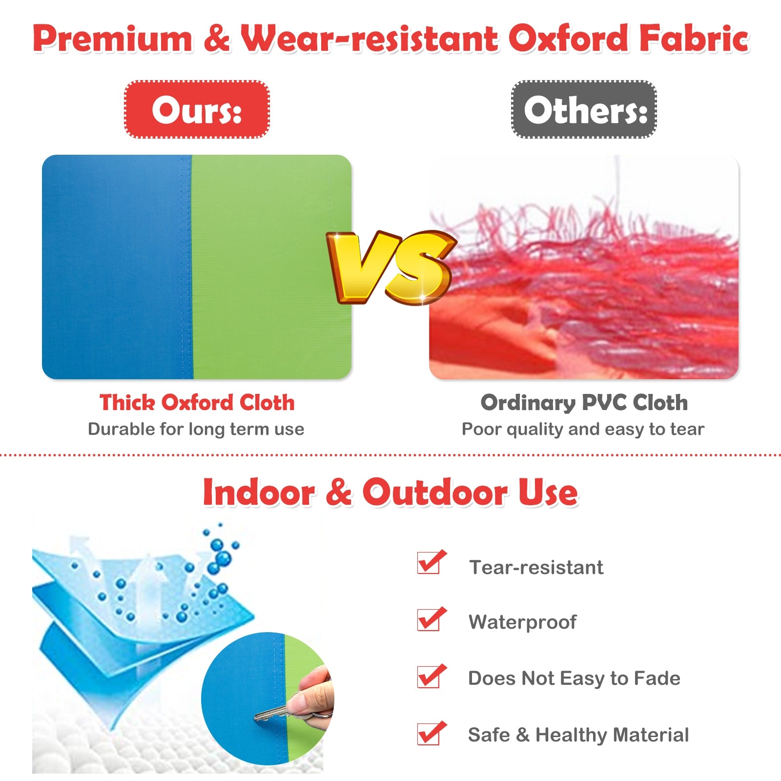 ● Durable Materials and Safety Design: Made of heavy-duty puncture-resistant 300D oxford with PVC coat this inflatable waterslide can be used for a long time. Moreover the climb areas are made of extraordinary 600D oxford. Besides the top of slide is surrounded with net to protect your kids.