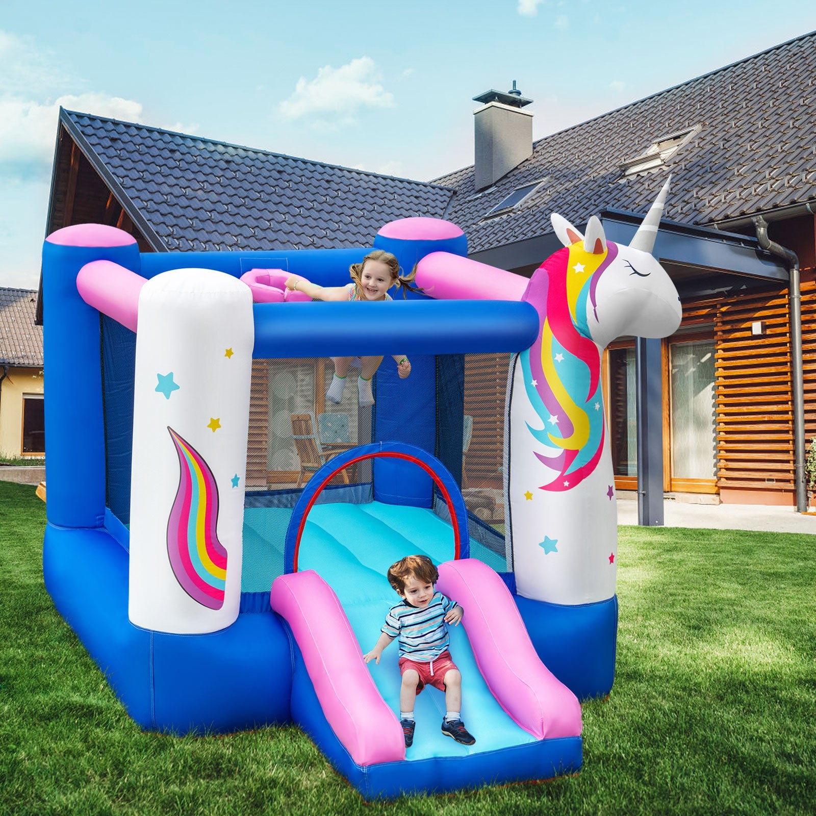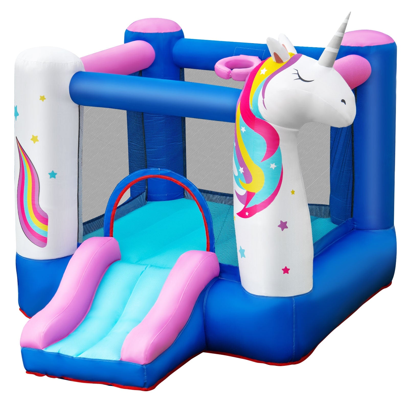 This lovely unicorn inflatable slide bouncer with basketball hoop is a perfect gift for your kids!