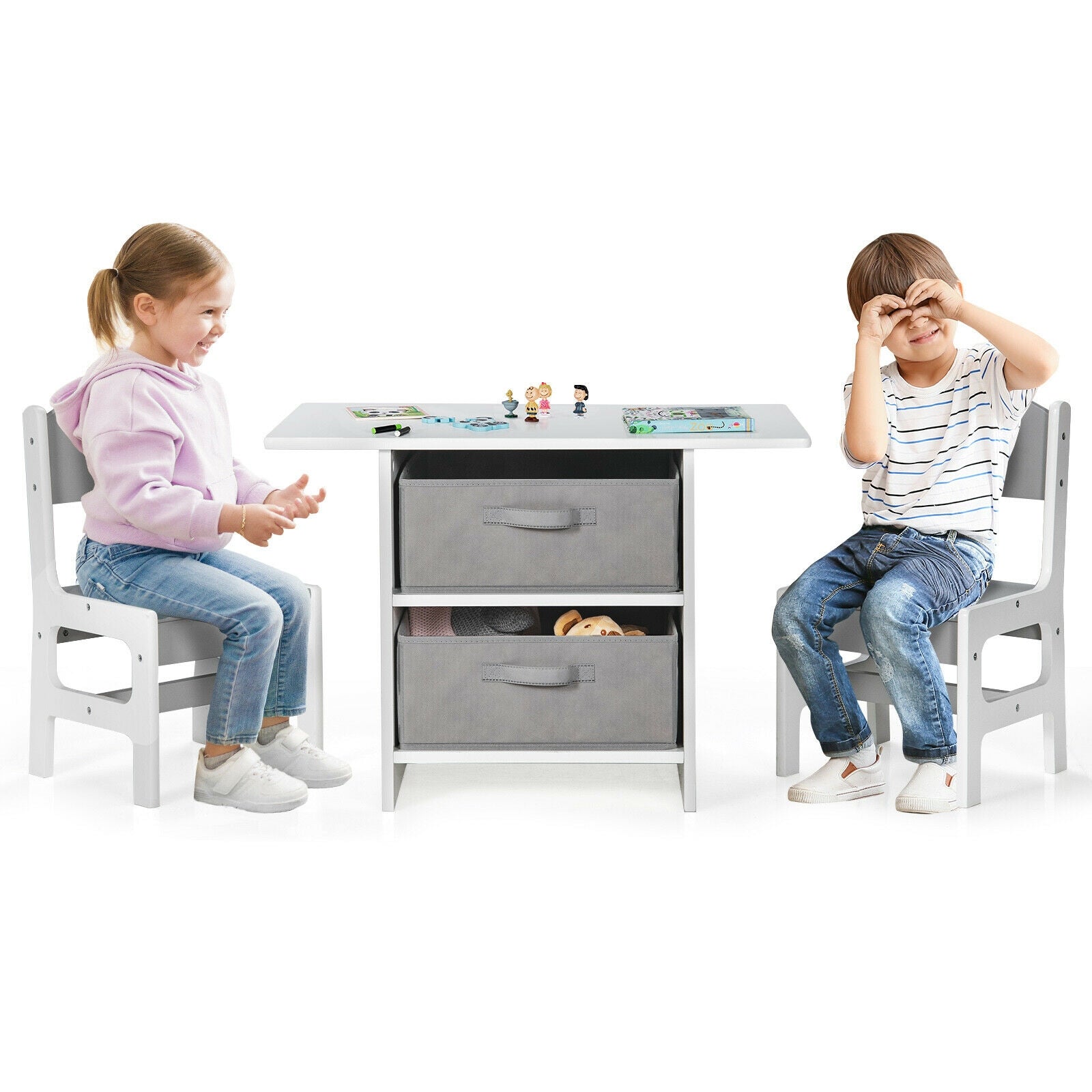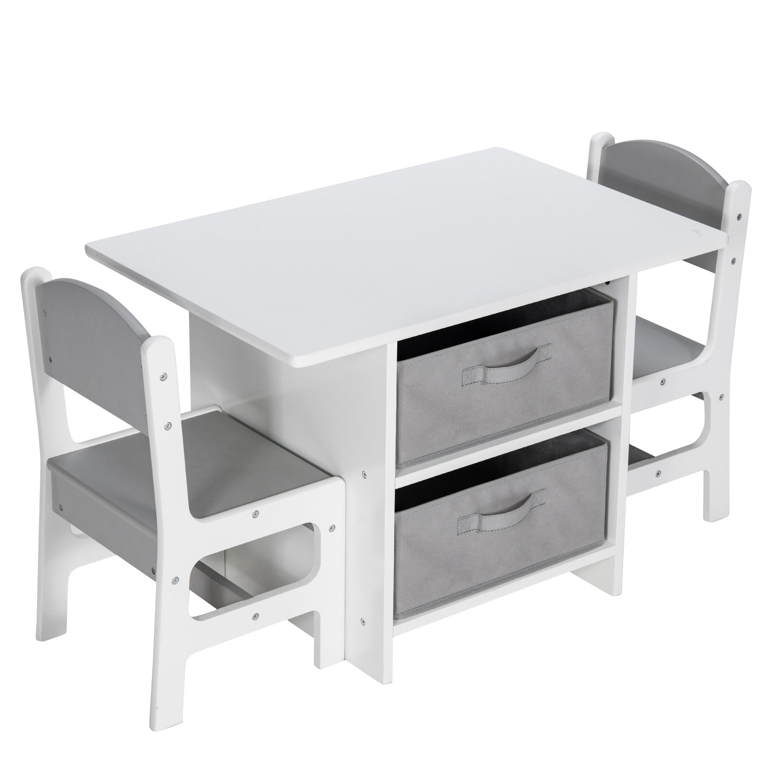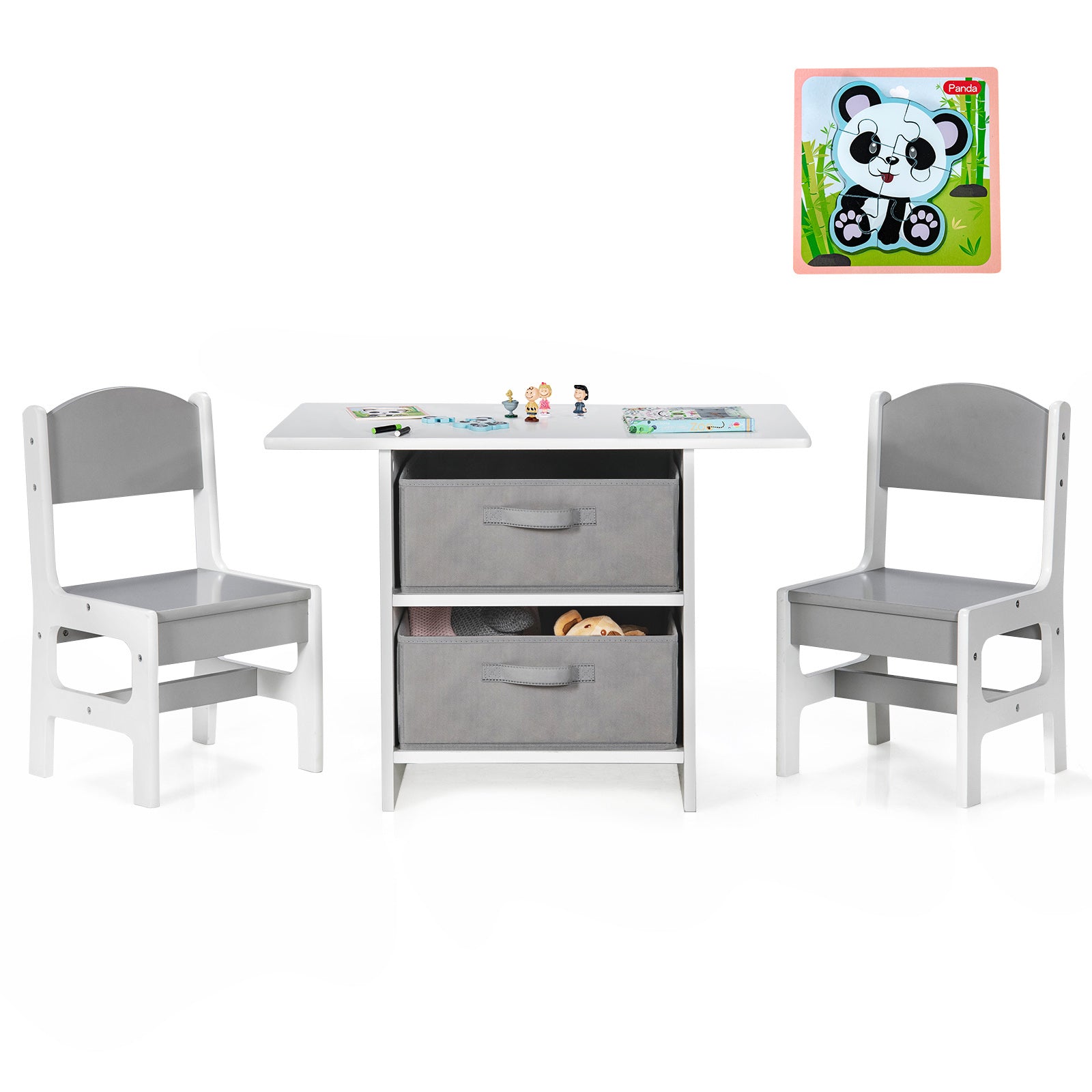 Wooden Kids Table and Chairs with Storage Baskets Puzzle