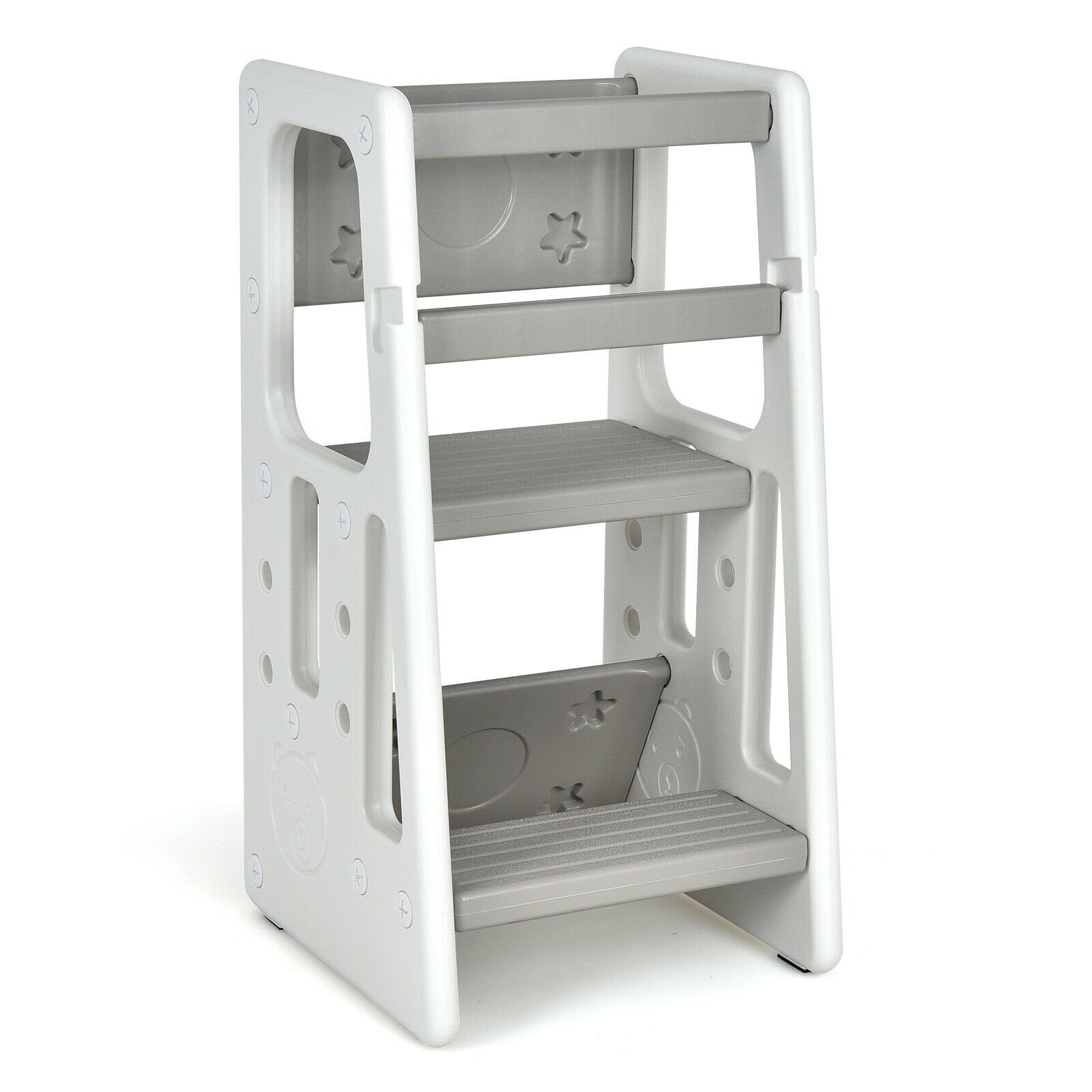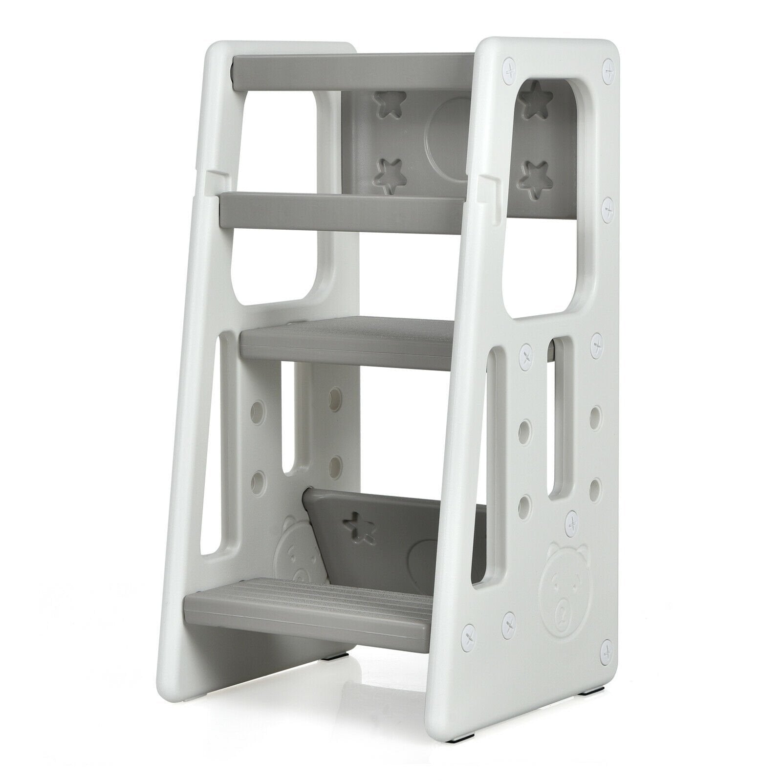 Kids Kitchen Step Stool with Double Safety Rails -Gray