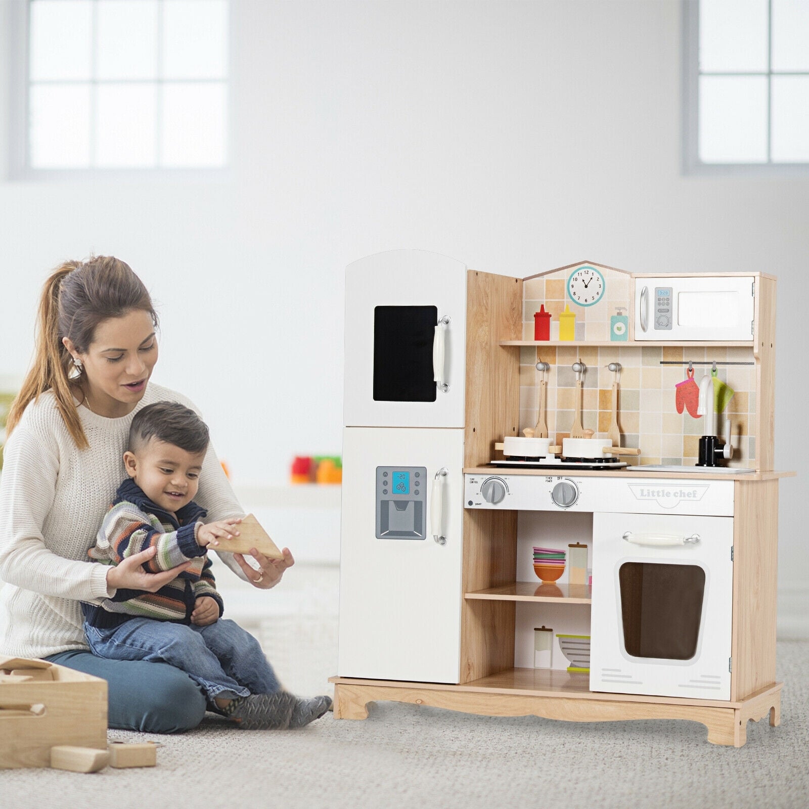Wooden Kids Pretend Kitchen Playset Cooking Play Toy with Utensils and Sound